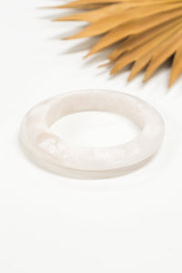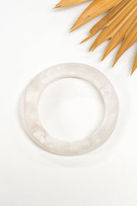 Smooth, sculptural, and effortlessly cool, this oversized resin bangle in white sand adds a modern coastal vibe to any look.