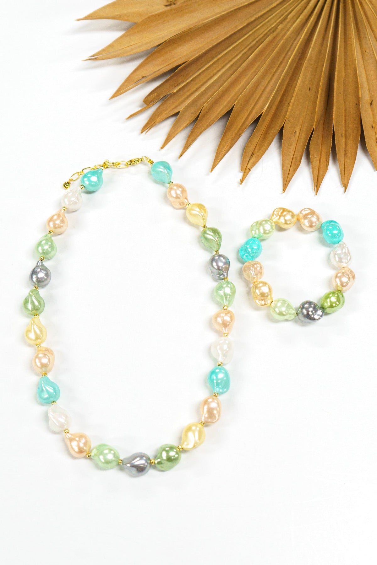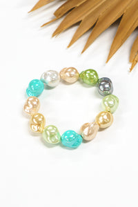 Designed to pair with the Tidefall Shell Pearl Necklace or shine on its own, this bracelet features chunky shell pearls with soft luster and a weightless stretch fit. Stack it, mix it, or wear it solo—this is your new go-to for that laid-back luxe look.