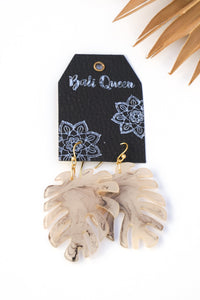 Shaped like a tropical leaf and swirled with natural tones, this single drop earring channels island ease and earthy charm—perfect for days that flow like the tide.