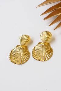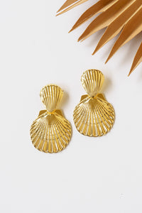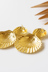 A tribute to the tides. These fan-shaped shells were made for sun-drenched escapes and barefoot moments. Gleaming gold with a hammered finish, they’re pure ocean energy.