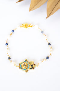 18K Toggle Lg Hamsa Lapis and Pearl Bracelet