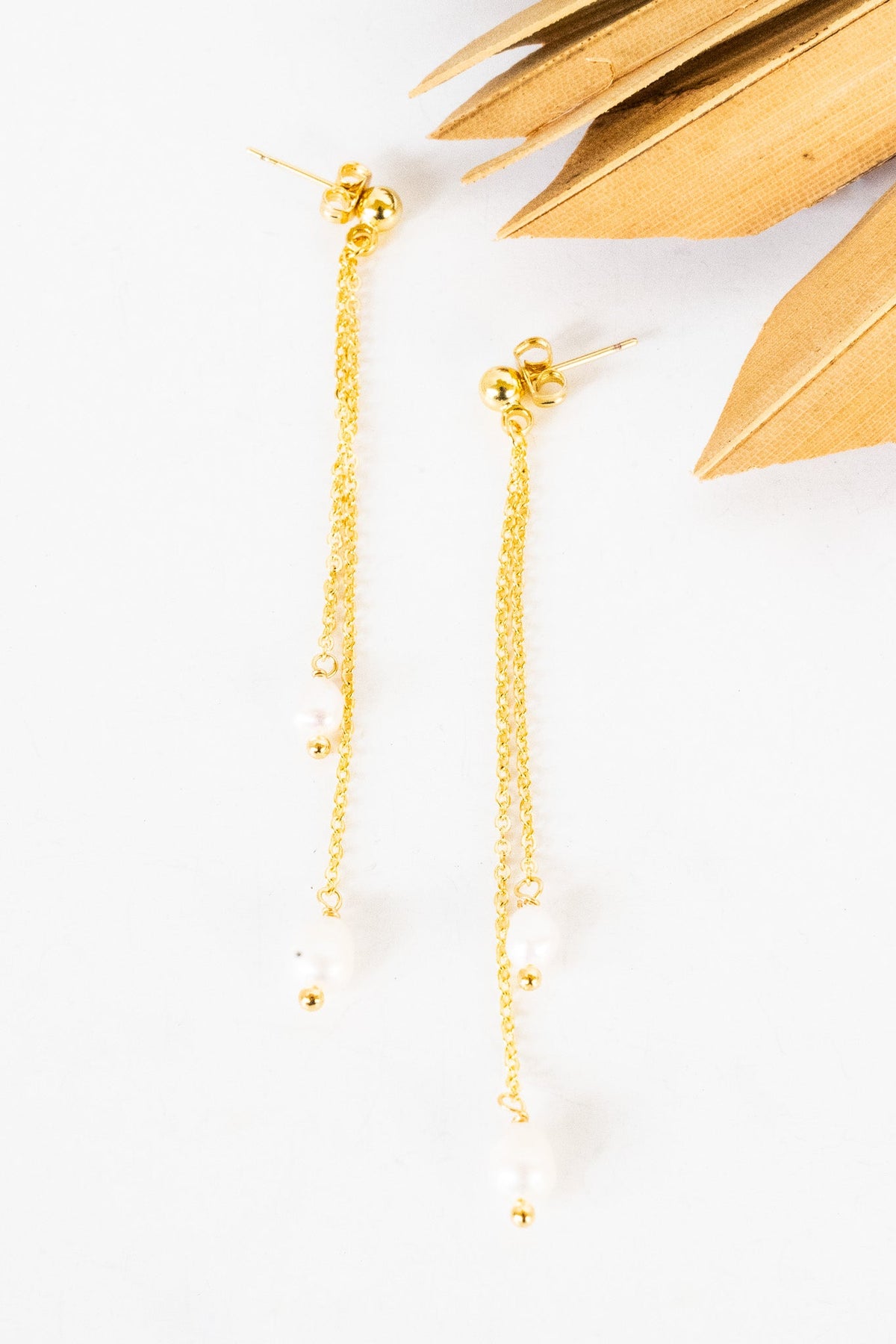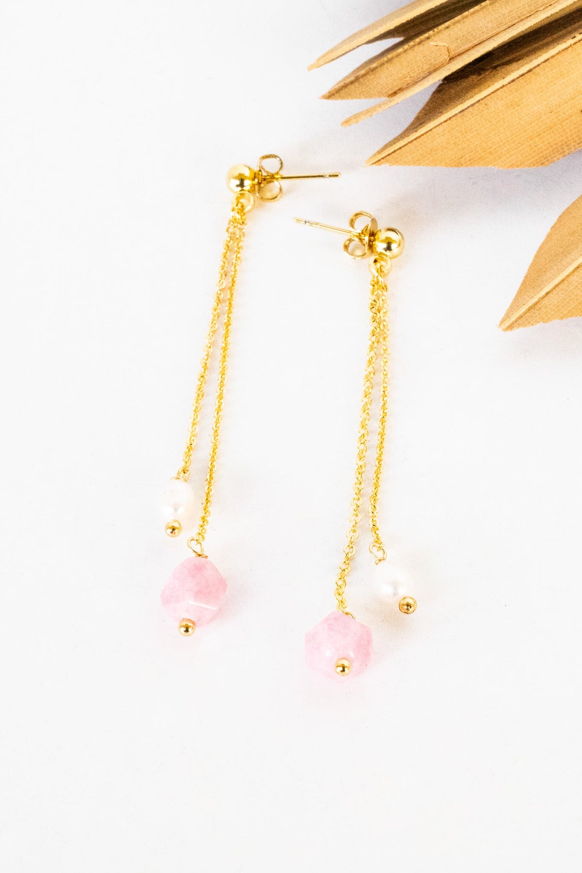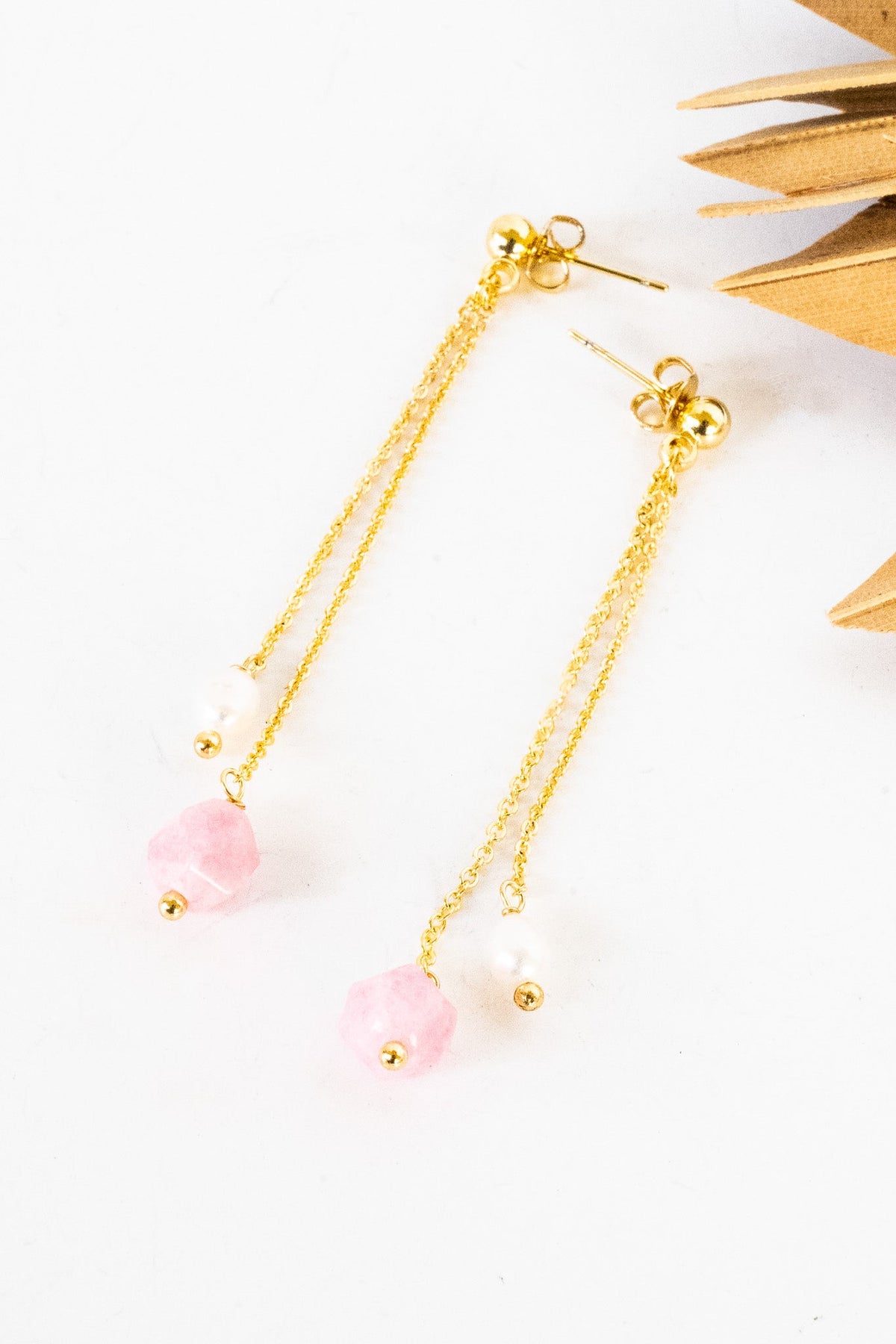 These drop earrings feature a beautiful arrangement of gemstones and pearls, offering a chic and understated look.