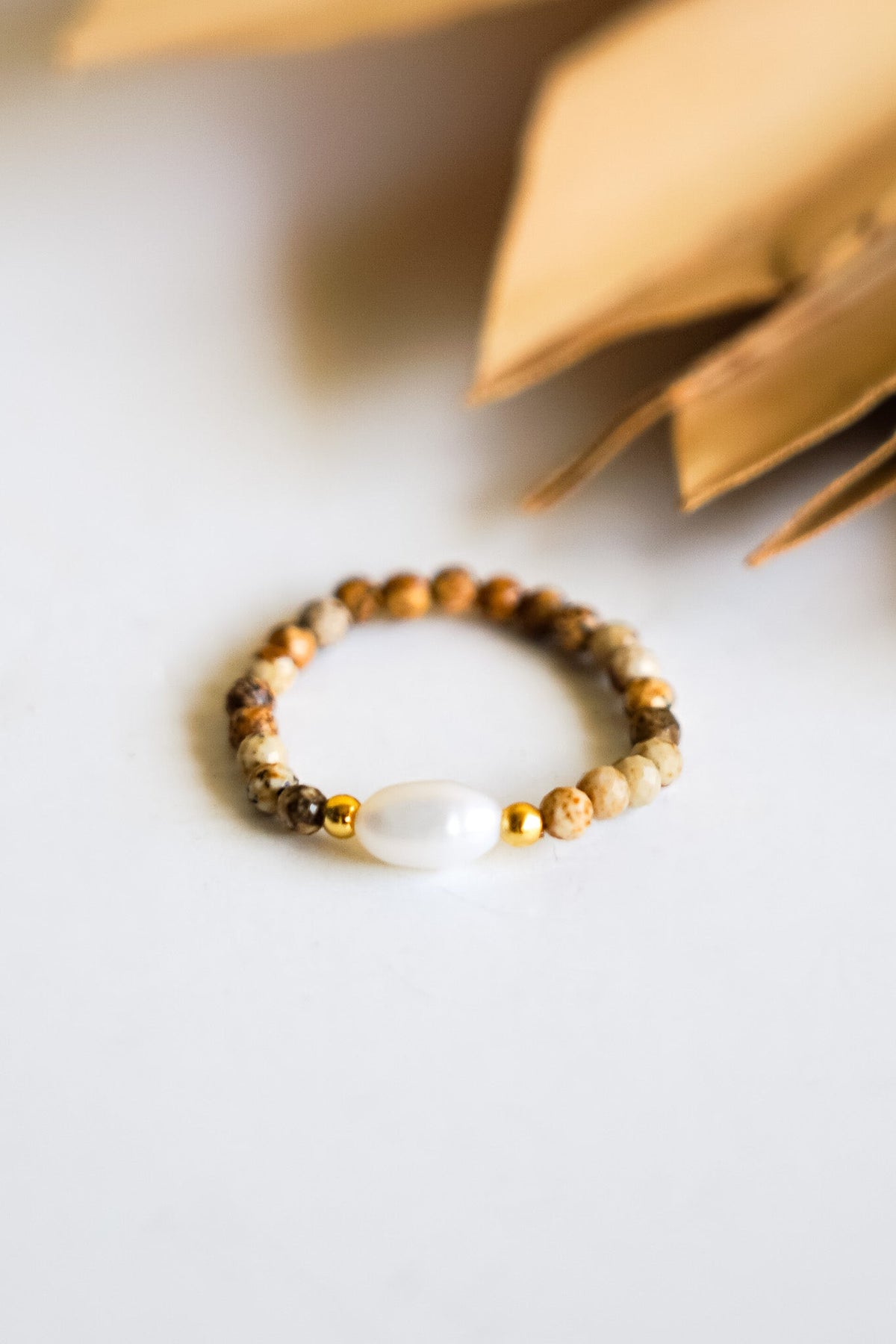 The La Perla Unity Stone Ring is a stretchy design featuring genuine stones that effortlessly adapt to your finger. This versatile piece adds a natural touch to any look, making it perfect for everyday wear or special occasions.