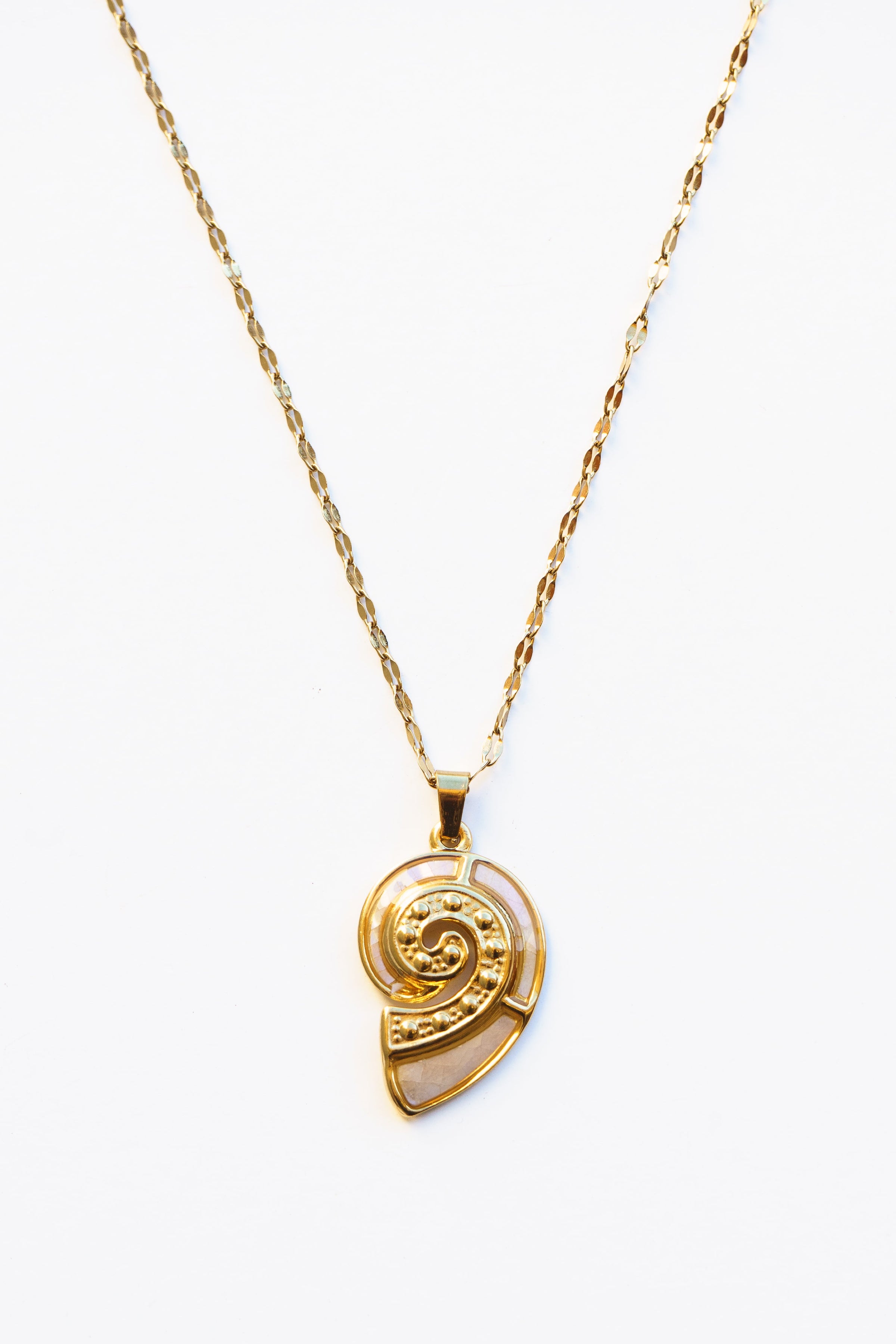 A classic ocean swirl pendant in gold stainless steel, designed to shine like the sea at sunrise.