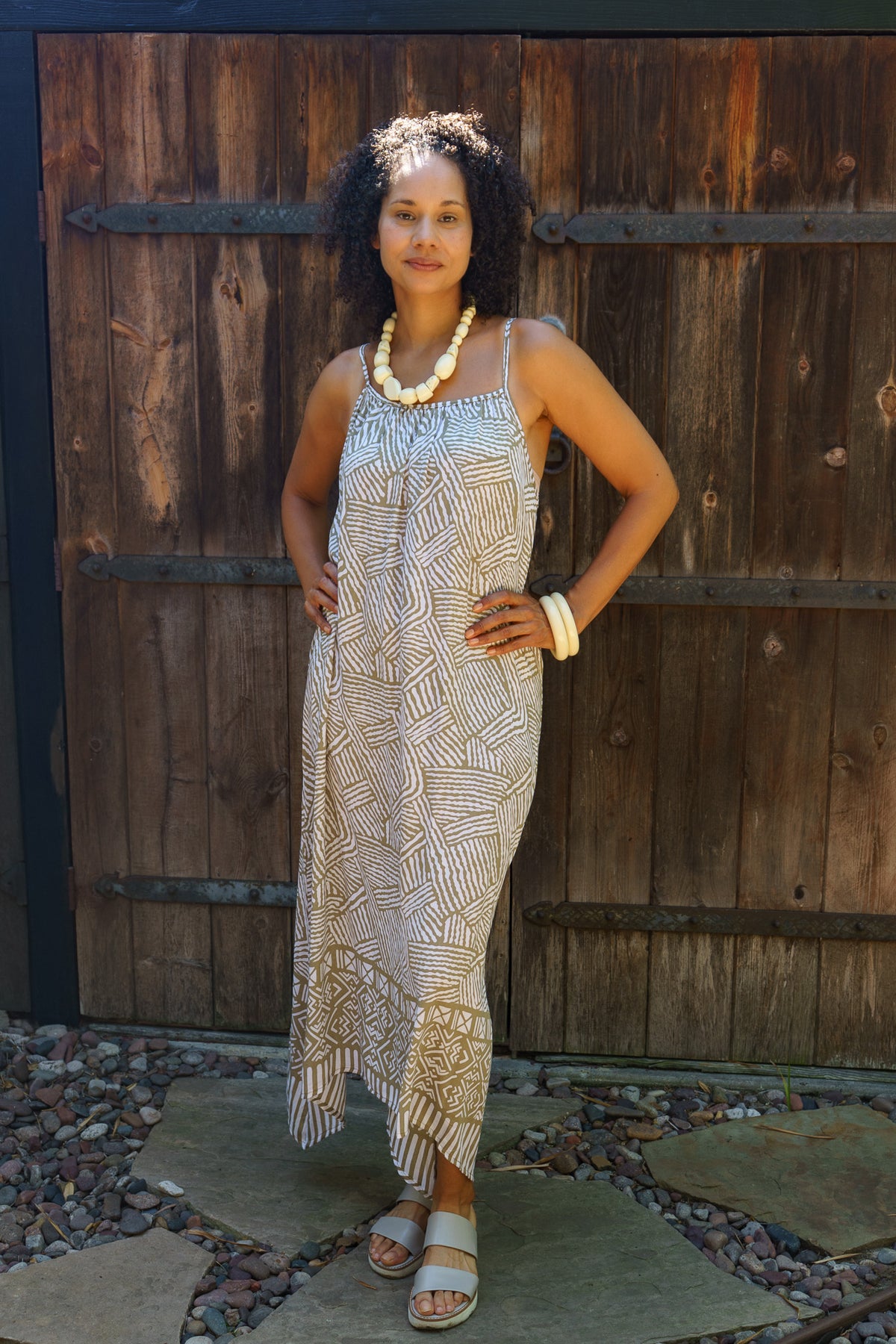 The Mojave Maxi is the essence of effortless island style. With its flowing silhouette and striking hand-drawn print, this pool-to-party dress drapes beautifully from day into night. Designed for versatility, it works just as well as a breezy cover-up as it does for sunset cocktails.