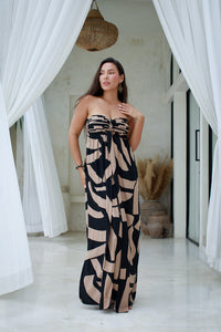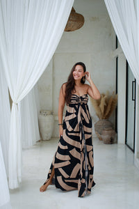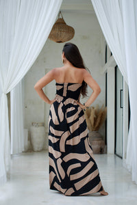 Escape to a sun-kissed paradise in the Moda Tie Me Up Maxi, with multi-wear straps that allow you to customize and style your look. Tie them around your waist for a flattering silhouette and strapless style, create a stunning look with the straps tied up in a V-neck style, or leave them draping for a free-flowing, effortless look. This dress is a another "must" in your vacation wardrobe.