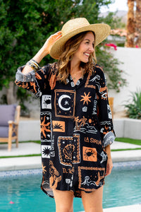 The Stella Shirt Dress blends comfort and style with its flattering curved hemline and airy silhouette. Perfect for effortless wear, it’s ideal for everything from casual strolls to sunset dinners, offering a laid-back yet chic vibe.